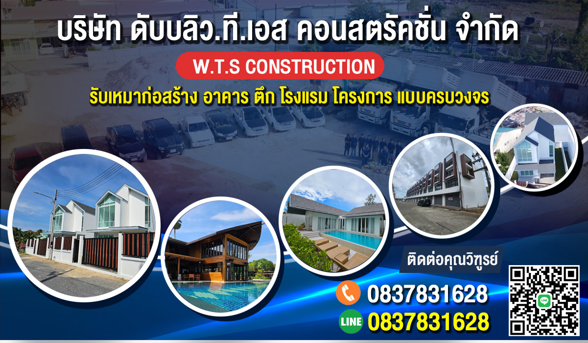 บริษัท ดับบลิว.ที.เอส คอนสตรัคชั่น จำกัด “W.T.S CONSTRUCTION” บริษัทรับเหมาก่อสร้างโครงการแบบครบวงจรที่กำลังมาแรงในขณะนี้ ด้วยบริการแบบครบจบในที่เดียว การันตีผลงานคุณภาพ ที่คุณไม่ควรพลาด